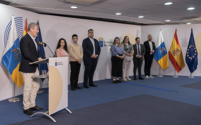 El presidente de Canarias estuvo acompañado en el acto por la consejera de Bienestar Social, Igualdad, Juventud, Infancia y Familias, Candelaria Delgado, el consejero de Agricultura, Ganadería, Pesca y Sostenibilidad Alimentaria, Narvay Quintero, y el director general de Juventud, Daniel Morales.