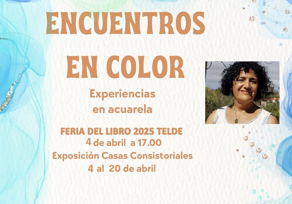 La artista y escritora Lidia Rivero ha inaugurado esta tarde su exposición "Encuentros en Color: Experiencias en Acuarela" en las Casas Consistoriales de Telde, dentro de la programación de la Feria del Libro 2025.