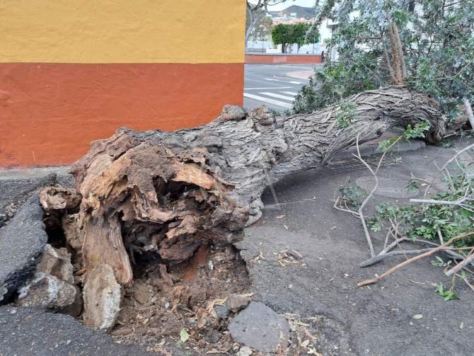 Según han detallado los vecinos, el árbol “cayó desde su base debido al deterioro de sus raíces”. Se trataba de un ejemplar de gran porte, que durante décadas había bordeado la carretera GC-100 a su paso por el casco antiguo de Jinámar..