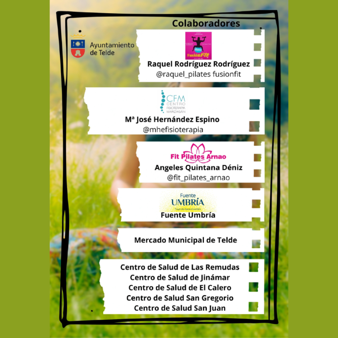 Janoa Anceaume agradece a las personas y entidades colaboradoras en este proyecto. Ellas han sido Raquel Rodríguez, de FusiónFit; María José Hernández, de CFM Fisioterapia Marzagán; Ángeles Quintana, de Fit Pilates Arnao; Fuente Umbría; el Mercado Municipal de Telde; y los centro de salud de Las Remudas, Jinámar, El Calero, San Gregorio y San Juan.
