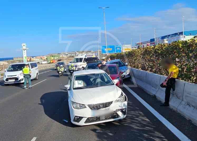 El Centro Coordinador de Emergencias y Seguridad 112 Canarias informó hace unos minutos de importantes retenciones en la GC-1, a su paso por Telde en dirección hacia Las Palmas de Gran Canaria, debido a una colisión múltiple, a la altura de Jinámar, en la que se vieron involucrados nueve vehículos. El suceso ocurrió en el carril izquierdo, junto a la mediana de la carretera.