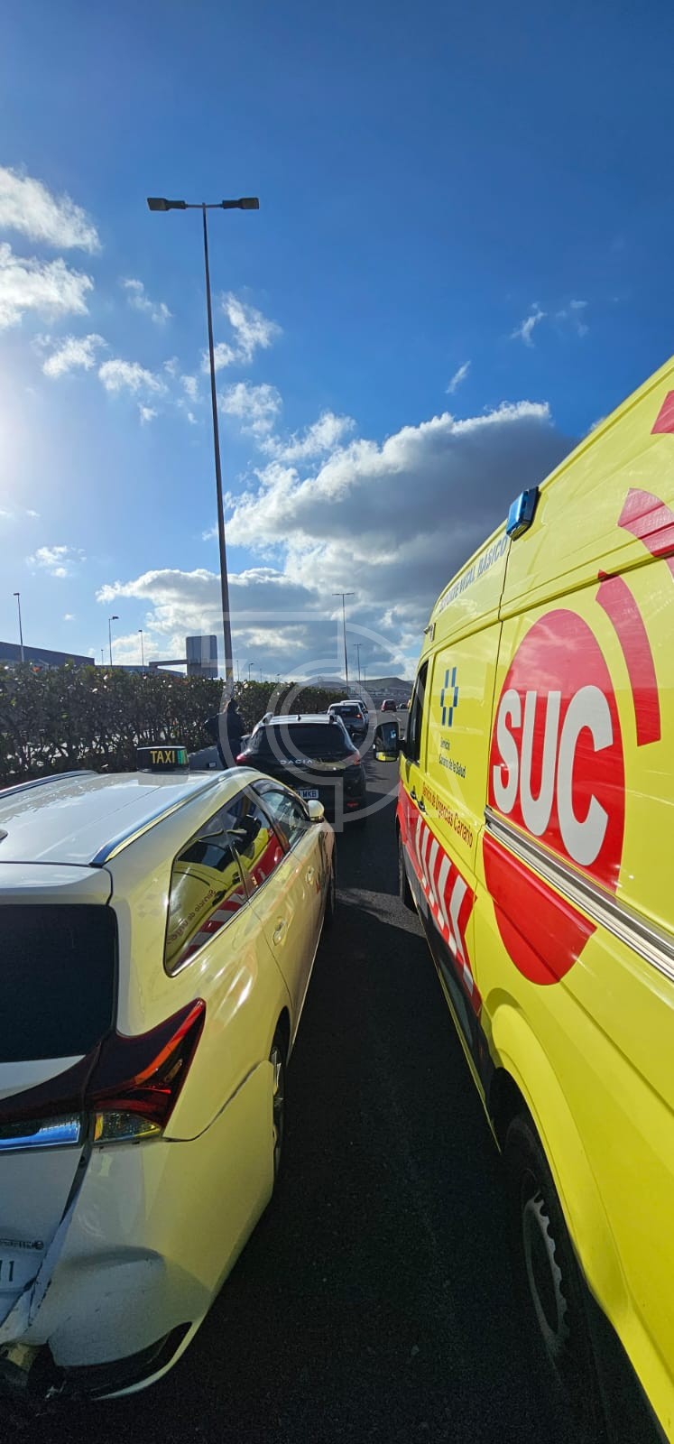 El personal del Servicio de Urgencias Canario (SUC) asistió en el lugar a dos personas, un varón y una mujer, que sufrieron heridas leves y que, posteriormente, fueron trasladadas en ambulancia del Servicio de Urgencias Canario de soporte vital básico al Hospital Perpetuo Socorro de la capital grancanaria para su valoración. El hombre presentaba una fractura en miembro inferior derecho y la mujer, dolor cervical. También intervino una ambulancia de Vecindario, que fue la primero en asistir a los heridos.