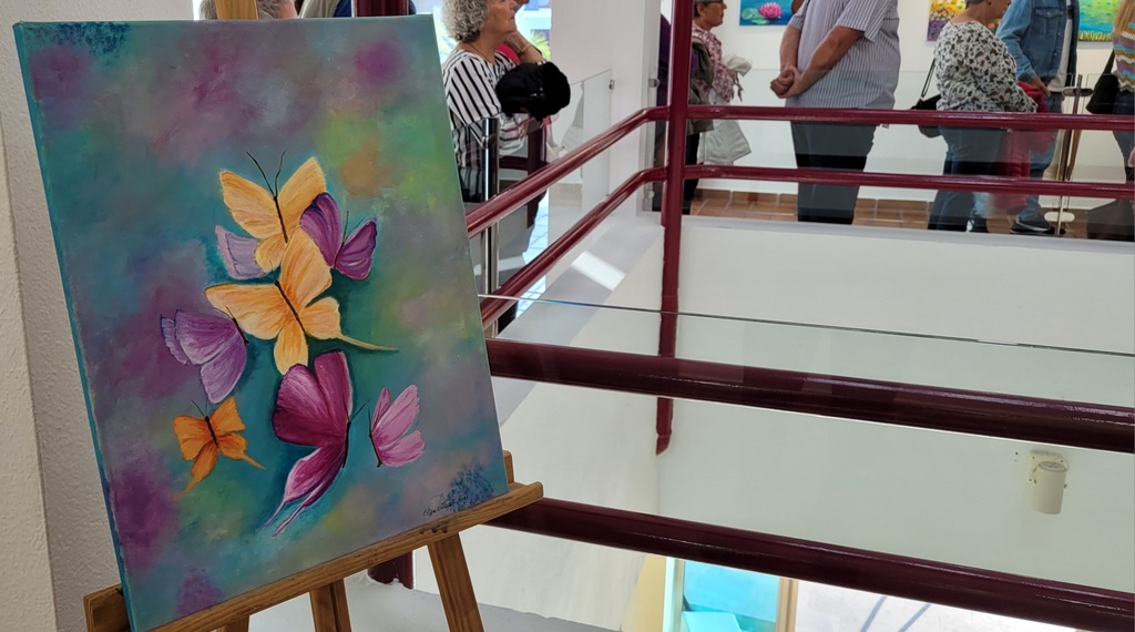 Realizadas las presentaciones y las fotos de familia para captar lo emotivo y afectivo de esta muestra pictórica que Elisa en su largo periplo sobre el estudio y práctica de esta compleja expresión artística, formándose en diversas técnicas pictóricas, nos sorprende en su diversidad temática que durante los años desde sus inicios hasta este reto individual ha superado con creces todo un aprendizaje con su esfuerzo, venciendo el vacío, temor y desafío al que muchas veces el artista se enfrenta ante el lienzo, como el escritor, poeta o dibujante en la sensación de volcar su inspiración ante el lienzo o la página en blanco.