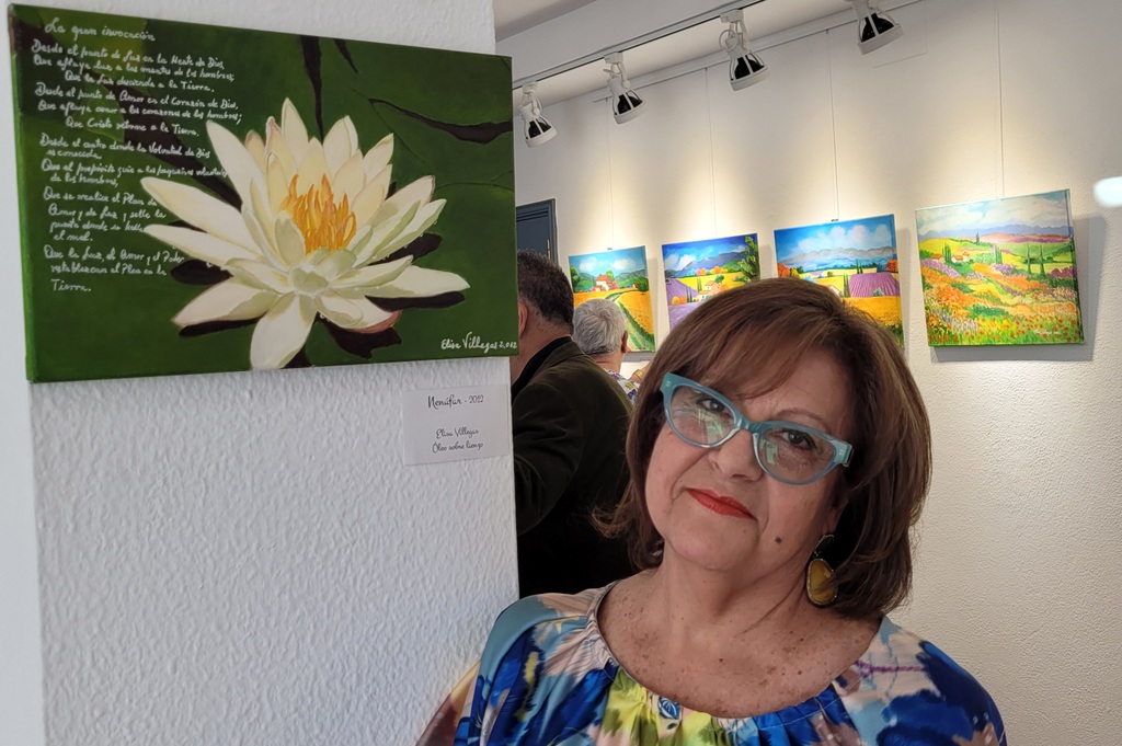 La artista Elisa Villegas en su intervención expresa su agradecimiento al Concejal de Cultura, Gestel, a la comisaria de la muestra, Esther Rodríguez, así como a Marcos encargado del montaje de la obra en exposición, y expresa: “Bienvenidos y gracias por su asistencia en un día que para mí es muy especial. Espero que disfruten con su visión lo que he pintado realizado con entusiasmo, cariño e inspiración. Muchas gracias por venir”.