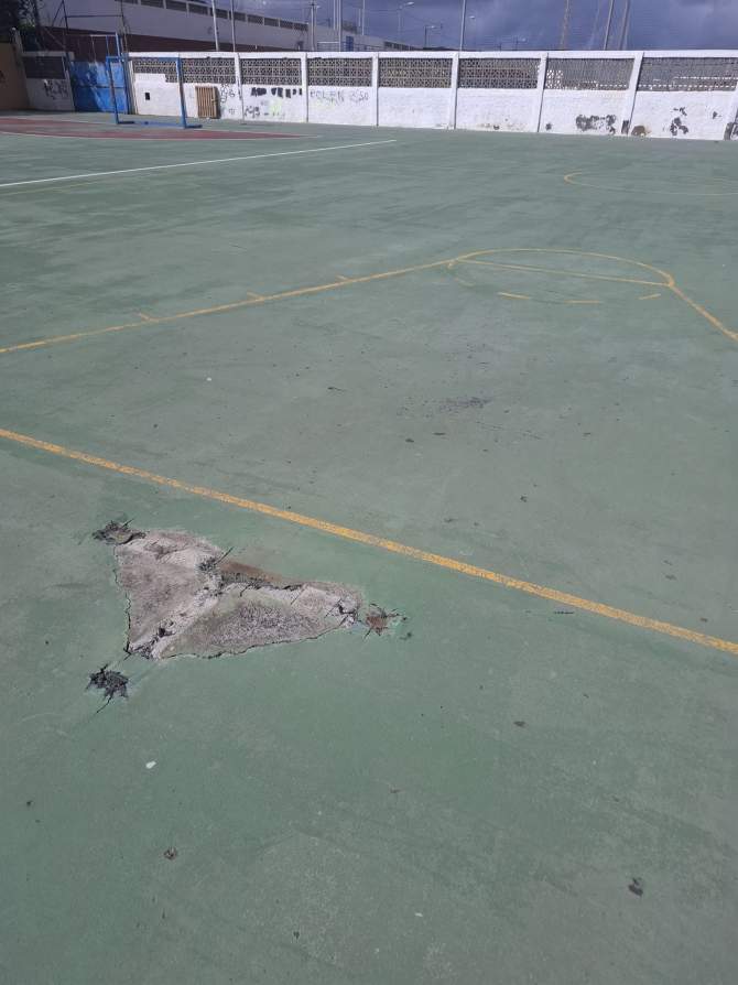 Entre las deficiencias señaladas, destacan la ausencia de canastas pequeñas para los más jóvenes —retiradas en 2019 y no repuestas hasta la fecha—, así como el deterioro del suelo, que presenta grietas y zonas levantadas que suponen un peligro para quienes practican deporte en el recinto.