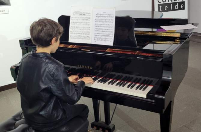 Intervienen al piano los alumnos de la Escuela de Música, Doramas Lorenzo Caballero y Alexis Suárez Macías, que interpretan con brillantez dos composiciones.