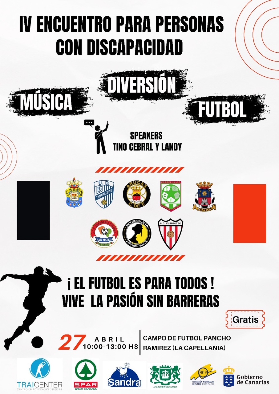 El campo municipal de fútbol Pancho Ramírez de Carrizal acogerá el próximo doming el IV Encuentro de Fútbol para Personas con Discapacidad, una jornada deportiva y social impulsada por la Fundación Canaria de la Federación Interinsular de Fútbol de Las Palmas (FIFLP), en colaboración con la propia FIFLP, la Consejería de Educación, Formación Profesional, Actividad Física y Deportes del Gobierno de Canarias, el Ayuntamiento de la Villa de Ingenio y el CD Futboltec.
