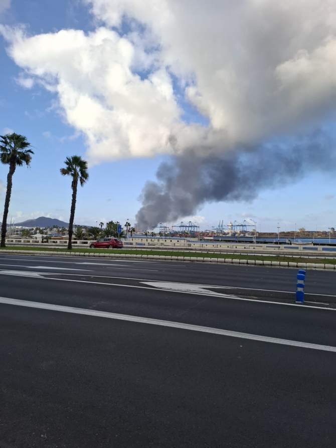 Un incendio declarado en la tarde de este viernes en la zona portuaria de La Esfinge, en Las Palmas de Gran Canaria, ha provocado una espectacular columna de humo denso y negro que pudo ser divisada desde diversos puntos de la capital, incluyendo barrios alejados como Siete Palmas.