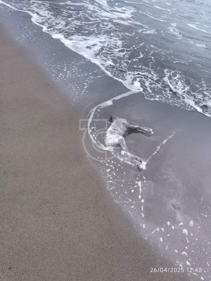 Según los testimonios, el animal fue localizado este mediodía en el rompiente de las olas sobre la arena. La presencia del animal generó preocupación tanto por el impacto estético como por las posibles implicaciones sanitarias.