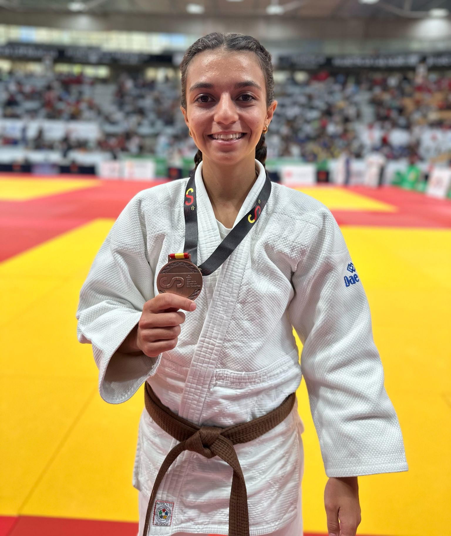 La judoca teldense Marta Monzó, perteneciente al Club Akari Las Nieves, se ha convertido en una de las protagonistas del Campeonato de España de Judo infantil y cadete celebrado este fin de semana en el pabellón municipal de Deportes de Huesca. En una cita que reunió a cerca de 700 judokas de todas las comunidades autónomas, la joven logró una meritoria medalla de bronce en la categoría cadete de menos de 40 kilos.