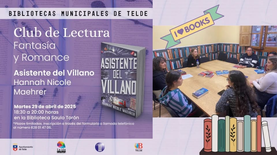 El Club de Lectura Fantasía y Romance, organizado por la Red de Bibliotecas Municipales de Telde, celebra este martes 29 de abril un nuevo encuentro literario en las instalaciones de la Biblioteca Saulo Torón, situadas en el parque urbano de San Juan. La cita comenzará a las 18.30 horas y estará centrada en la novela "Asistente del villano", de la escritora Hannah Nicole Mae.