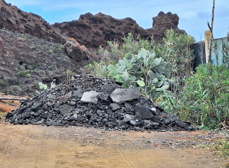 Vecinos de Los Arenales denuncian el abandono de escombros, restos de asfalto y alquitrán, es un solar privado tras unos trabajos que el Cabildo de Gran Canaria llevó a cabo en la carretera hacia Lomo Magullo.