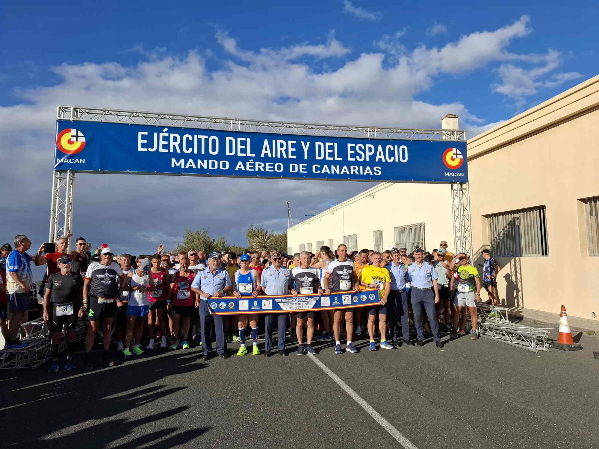 La Base Aérea de Gando vivió este jueves 1 de mayo una jornada marcada por el deporte, la superación y el compromiso social con la celebración de la XIX edición de la Media Maratón del Mando Aéreo de Canarias (MACAN), que volvió a reunir a cerca de 1.000 corredores en las modalidades de Media Maratón (21,097 km) y Vuelta Atlética (7 km).