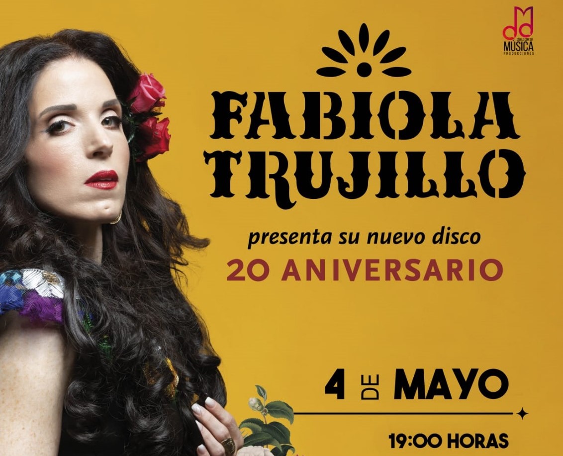 La cantante Fabiola Trujillo celebró este domingo 4 de mayo por todo lo alto sus 20 años de carrera artística con un emotivo concierto en el Teatro Juan Ramón Jiménez de Telde, donde se congregó un público entusiasta que ovacionó cada una de sus interpretaciones.