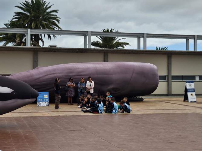 En el encuentro, celebrado en el Salón Polivalente I del Edificio de Ciencias Básicas del Campus de Tafira, participaron además, medio centenar de alumnos de primaria del CEIP Maestro Félix Santana, de Telde, quienes realizaron talleres educativos organizados por el equipo educativo de Loro Parque Fundación y el departamento de comunicación de CanBio, incluyendo una muestra de réplicas hinchables de cetáceos a tamaño real, diseñada para sensibilizar sobre la biodiversidad marina.