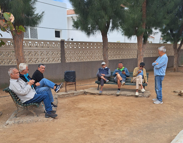 Un grupo de mayores de La Garita ha tomado un pequeño espacio del parque ubicado en la calle Palmera ante la falta de un local social en el que reunirse. Piden al Ayuntamiento de Telde que instale más bancos en este puntos, al ser los actuales insuficientes.
