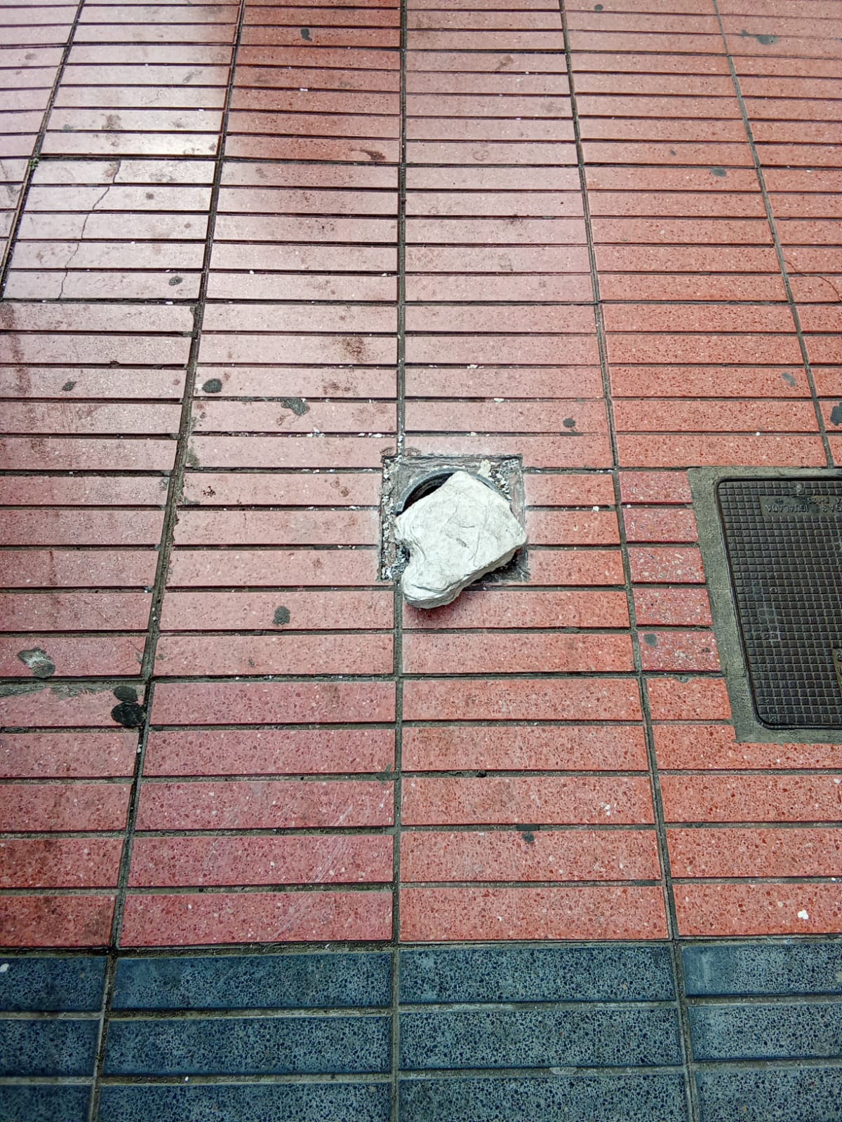 Vecinos del Cruce de Melenara advierten del peligro que existe en la calle Galileo Galilei, junto al buzón de Correos, debido a un orificio en la acera.