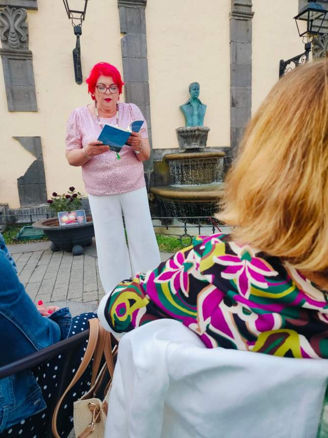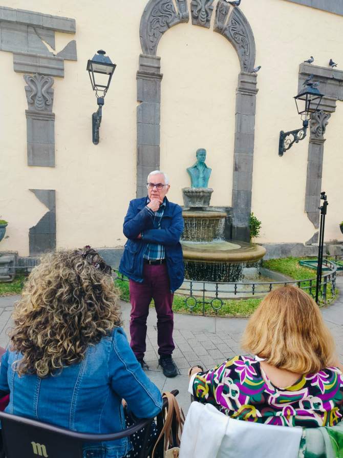 La tarde transcurrió serena, acompañada por el murmullo del agua y el revoloteo de las palomas, en una atmósfera que evocaba la figura de Susi Arencibia. Los asistentes recordaron su bondad, su pasión por la poesía y su entrega a las Veladas Poéticas, de las que fue impulsora y coordinadora.