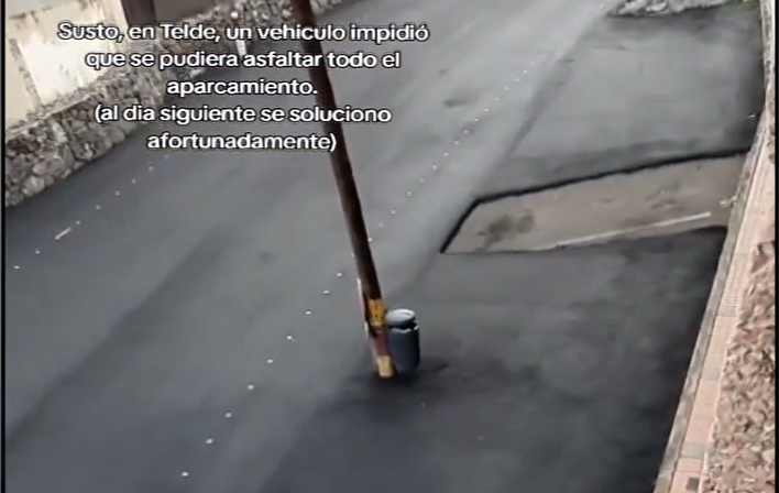 Una situación curiosa ha tenido lugar en una calle de Telde, donde un vehículo estacionado impidió que los operarios completaran el asfaltado de la vía. Las imágenes mostraban una zona perfectamente asfaltada, excepto un pequeño espacio que había quedado sin cubrir debido a la presencia del automóvil.