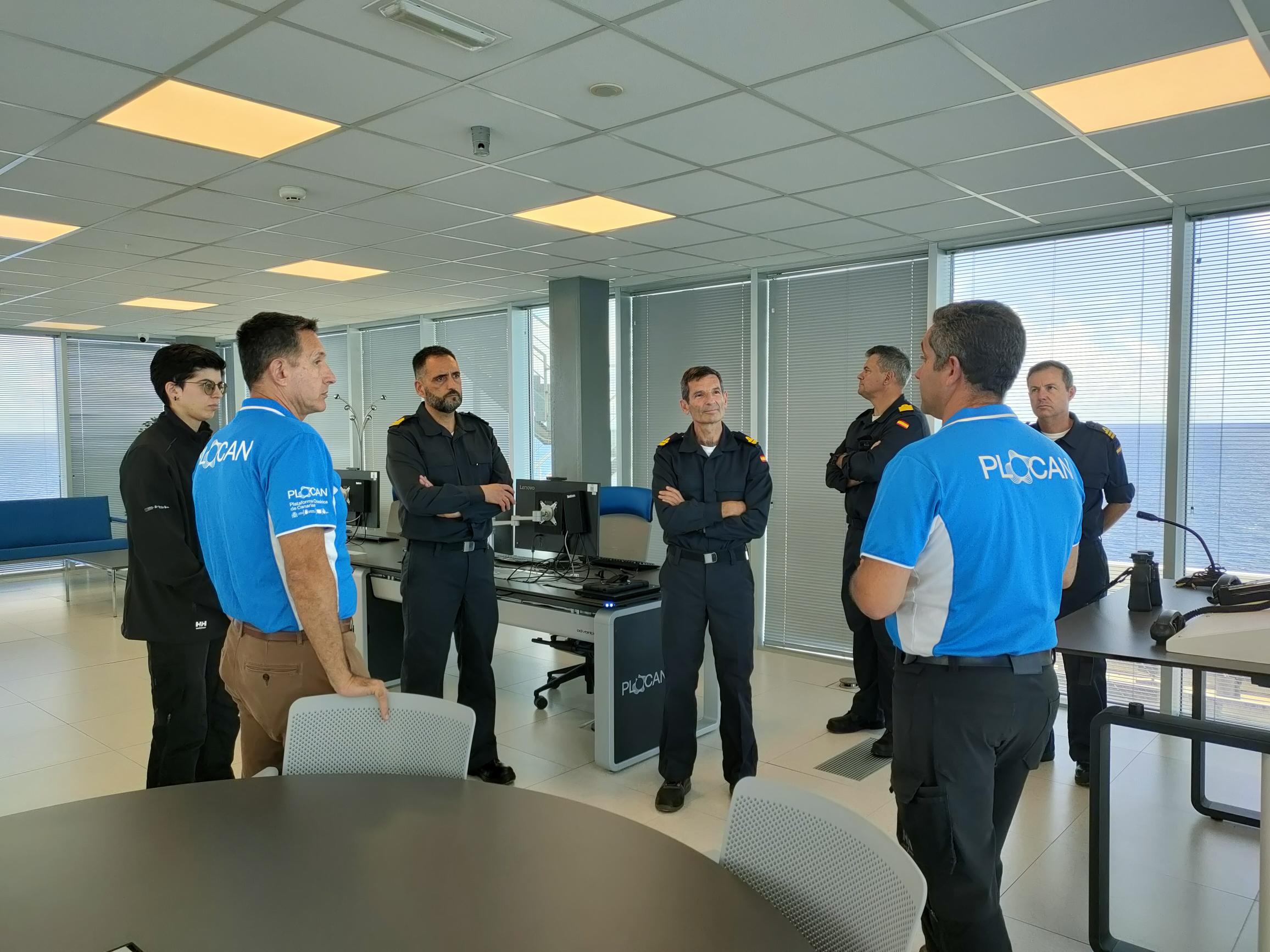Durante la jornada, los mandos recorrieron tanto la sede en tierra de PLOCAN como la plataforma offshore, y comprobaron el potencial de estas infraestructuras como centro de referencia internacional en investigación marina y desarrollo tecnológico. Técnicos de PLOCAN presentaron los principales proyectos en marcha, destacando iniciativas en observación oceánica, energías renovables marinas, vehículos autónomos, inteligencia artificial y acústica submarina.