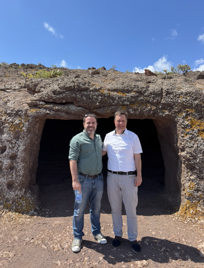 Una vez finalizada la conferencia y el coloquio con estudiantes y miembros de la comunidad universitaria, el profesor Krakora se desplazó al municipio de Telde junto al profesor Daniel Castillo Hidalgo, secretario del Departamento de Ciencias Históricas y vecino del municipio.