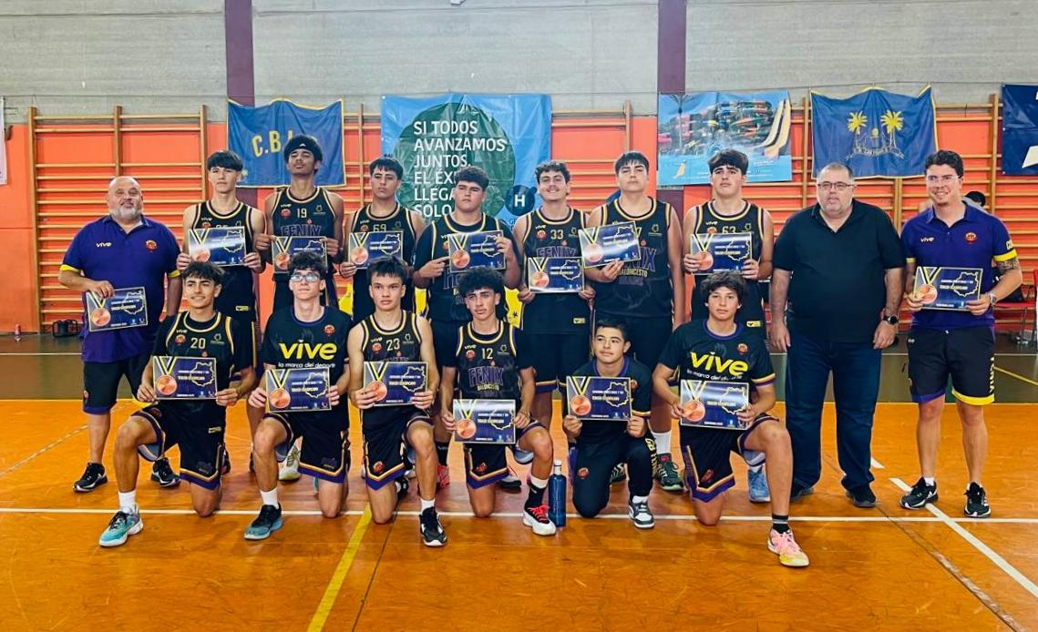 Por su parte, el equipo cadete quedó tercero de Gran Canaria en la fase final celebrada en el IES Schamann. Perdió en semifinales contra el Claret Azul por 73-48 y venció en el partido por el tercer puesto ante el Canterbury School por 90-63. Jaro Guerra, con 29 puntos, fue el máximo anotador fenicista en esa contienda. La próxima semana jugará en Tenerife la fase de ascenso a Liga Autonómica. Debutará el viernes a las 16.30 horas frente al Tizziri Tinajo en el pabellón de Garachico. Su participación continuará el sábado a las 9.30 ante el EMB Candelaria en el pabellón José Leonardo Rodríguez. A las 16:30 se medirá al Claret Azul en el mismo escenario. Si el CB Fénix finaliza primero, disputará la gran final por el ascenso a las 12.00 horas contra el líder del grupo B en Los Realejos.