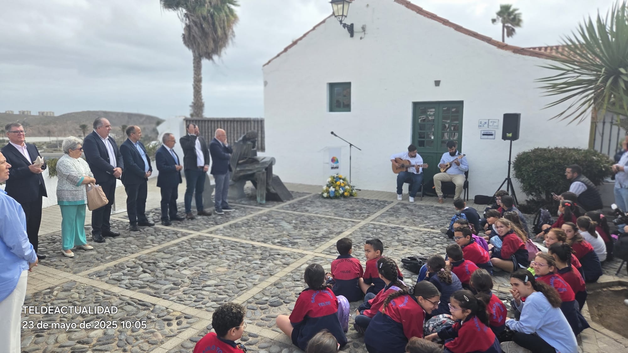 El acto arrancó con la actuación musical del guitarrista Alberto González Falcón y el timplista Abraham Ramos Chodo, que sonó de fondo mientras niños y niñas del CEIP Saulo Torón leyeron el poema ‘Cada día’, extraído del poemario ‘Canciones de la orilla’.