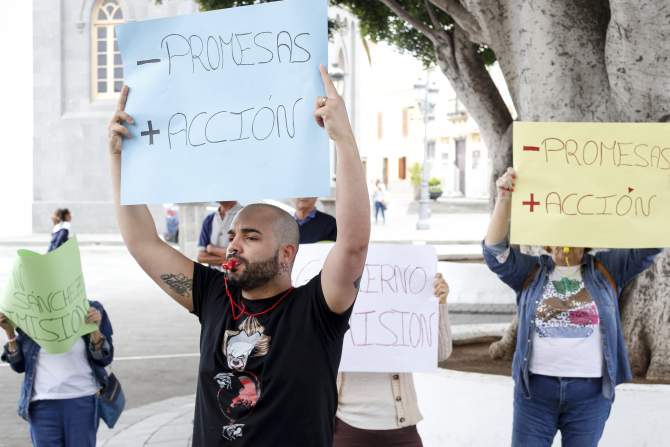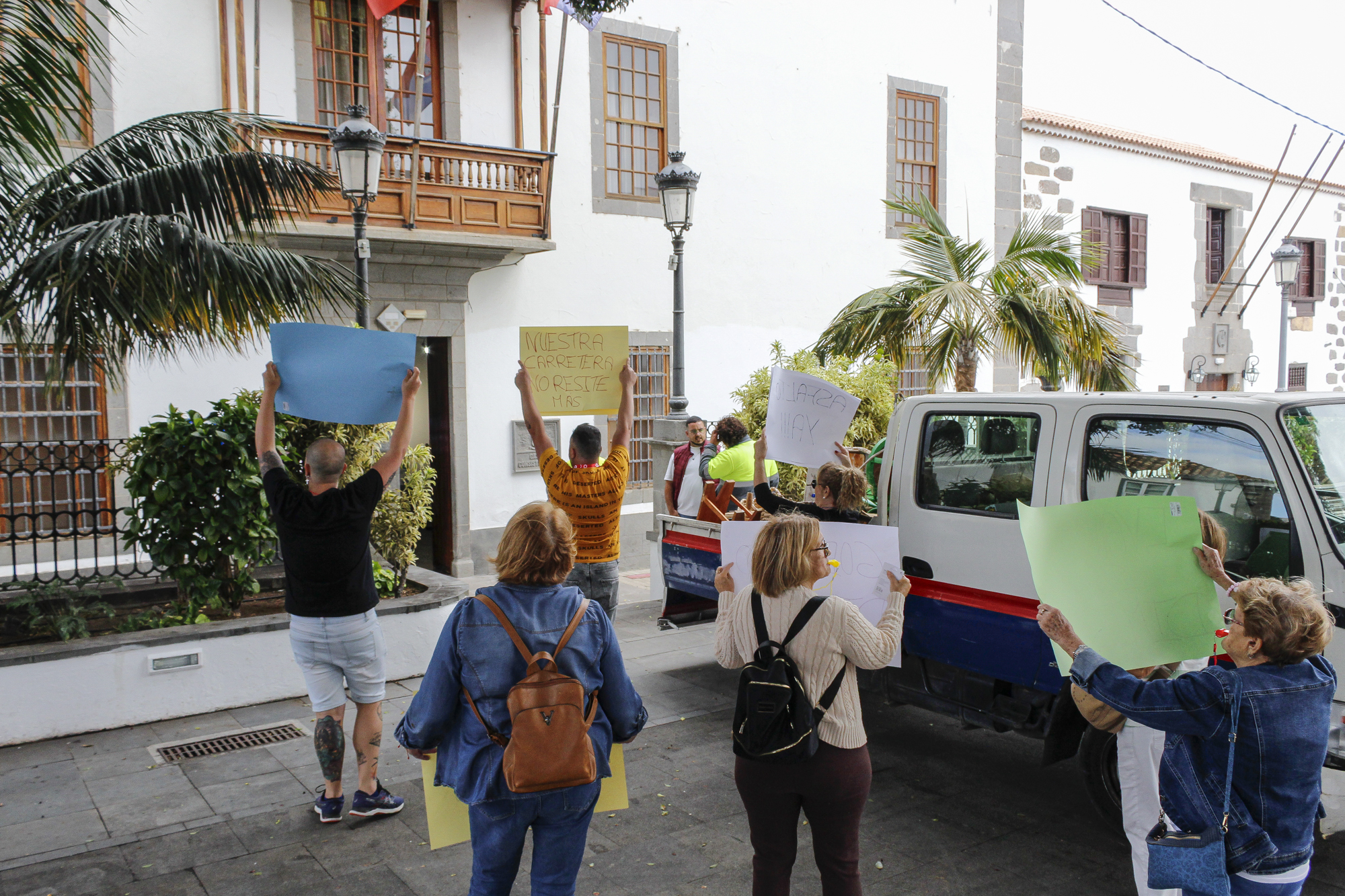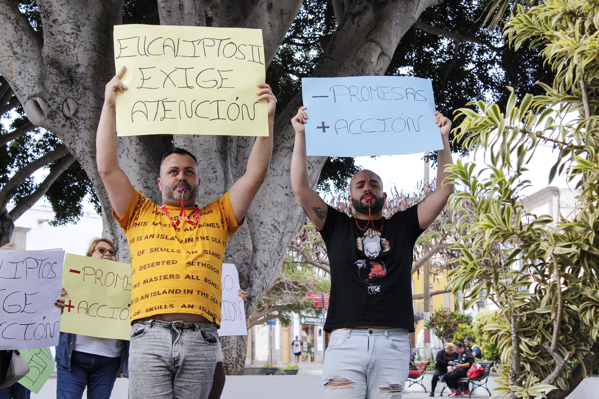 La protesta, que ha coincidido con la celebración del pleno ordinario de mayo en las Casas Consistoriales, ha estado liderada por Aridane Montesdeoca, presidente de la Asociación de Vecinos Armiche, que representa a los residentes de Eucaliptos II.