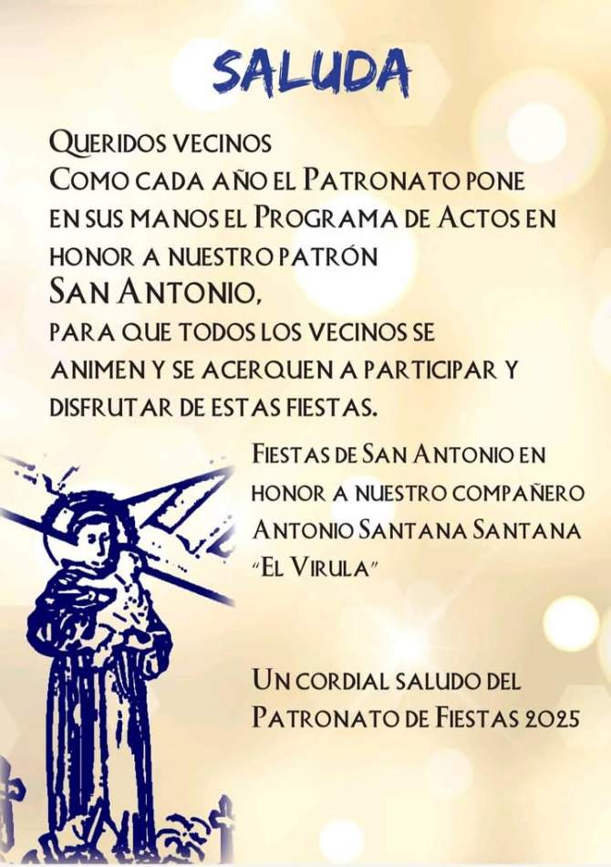 San Antonio ya calienta motores para el inicio de las fiestas patronales, que arrancan el 6 de junio y se extenderán hasta el 15 con un nutrido programa de actos para todos los públicos que ya ha sido desvelado. Como ya anunció TELDEACTUALIDAD, los festejos se inician con un pregón a cargo de los miembros del Patronato de Fiestas, a las 20.00 horas, en el que se recordará al vecino Antonio Santana Santana, El Virula, fallecido el pasado mes de febrero. Previamente, desde las 18.00 horas, habrá un pasacalle acompañado de una batucada. La primera noche se cierra con una verbena a cargo de la orquesta Haché Tamarindos.