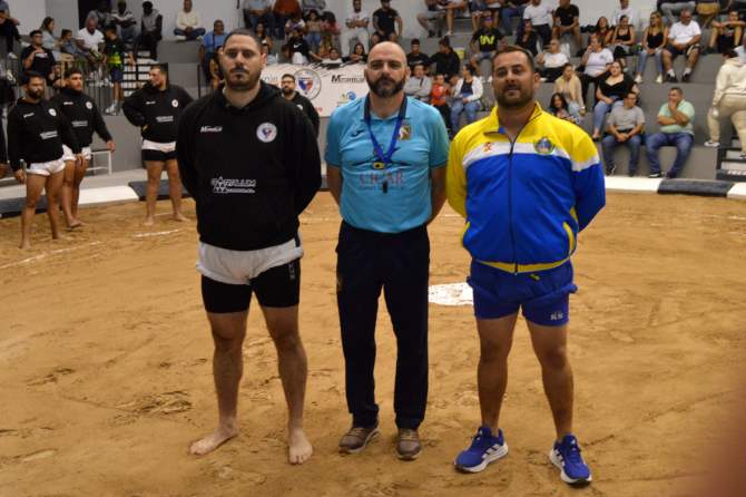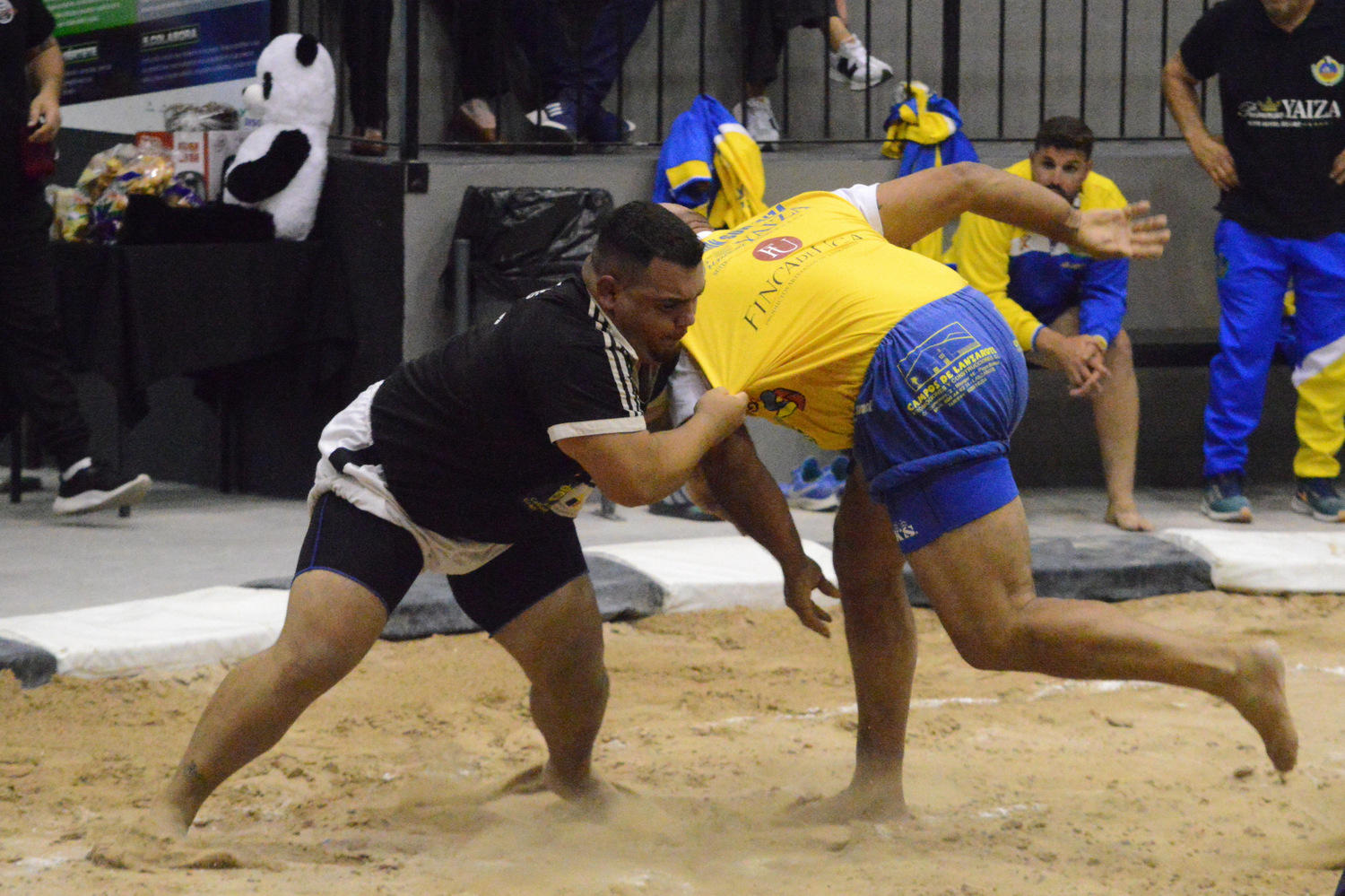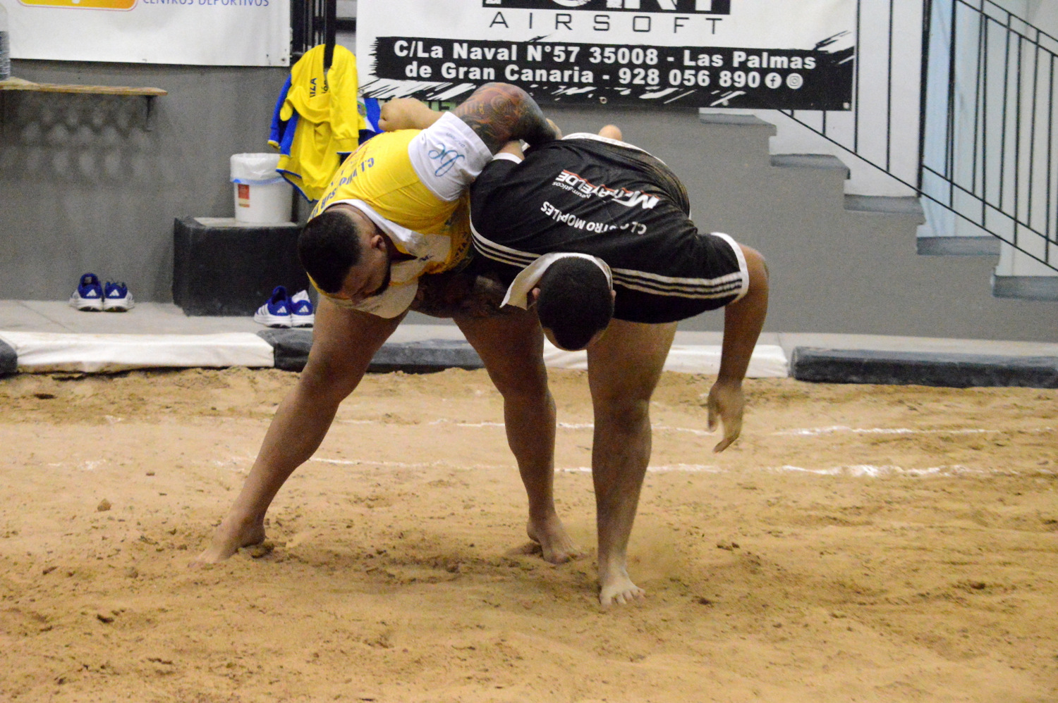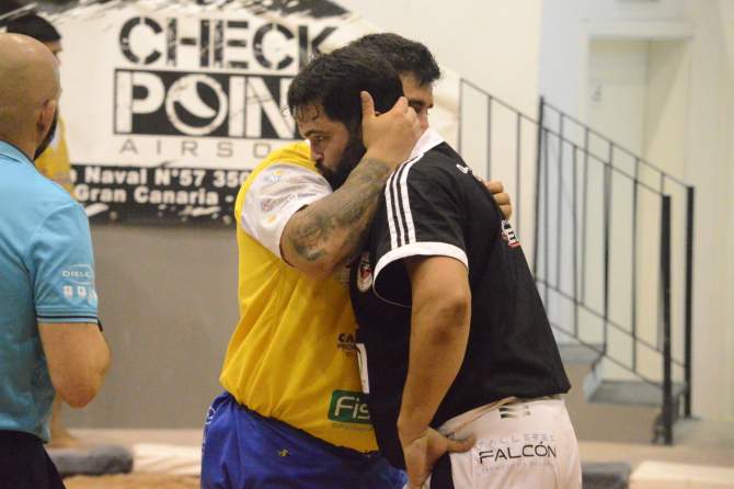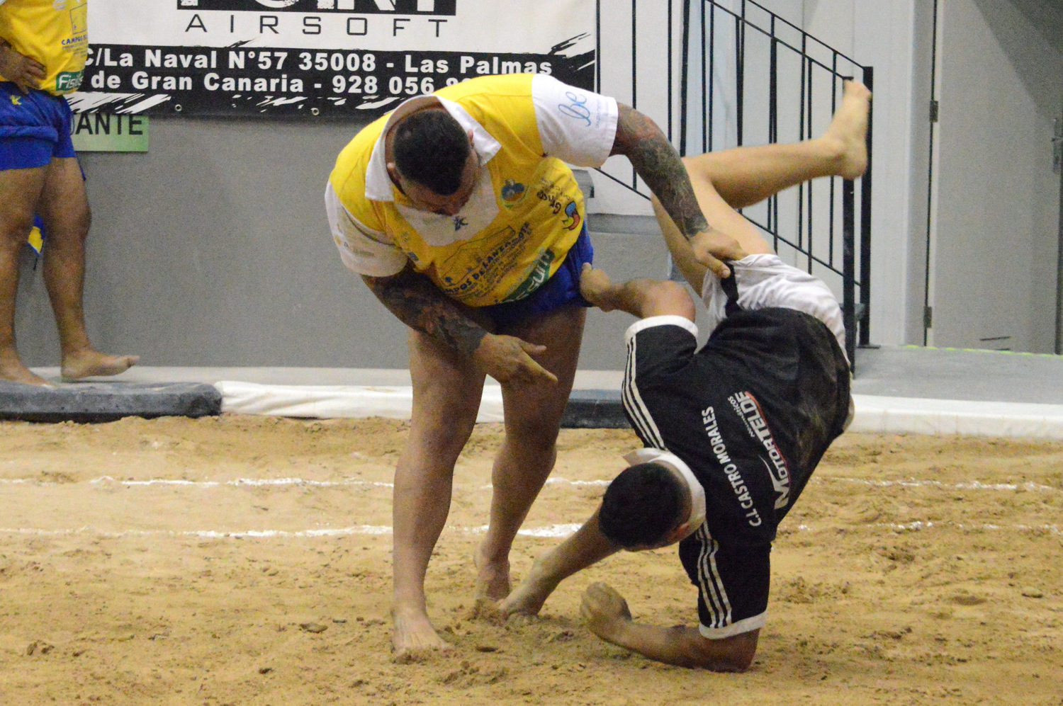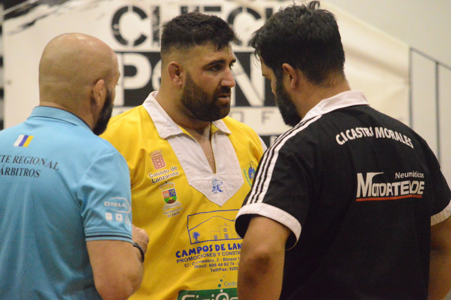 Agarrada entre Alberto Mateo e Issel Cruz (Foto: Juan Antonio Hernández)El CL Castro Morales ha empatado este sábado frente a CL Unión Sur Yaiza en la luchada de ida de los cuartos de final del torneo Cajasiete Gobierno de Canarias de segunda categoría celebrada en el terreno Lomo Cementerio de San Gregorio. Alberto Mateo se separó en el último emparejamiento con IsAel Cruz cuando el marcador iba 11-11.