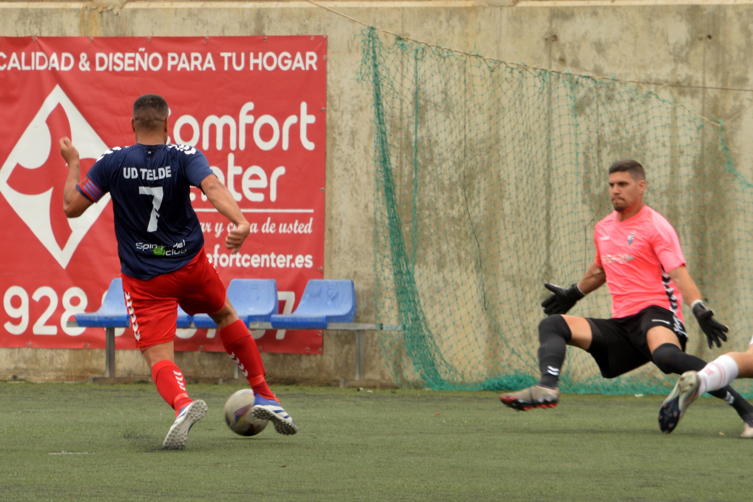 El segundo acto comenzó con susto importante parte para la UD Telde. El árbitro señaló pena máxima por una caída dentro del área. Gino la ejecutó con la pierna derecha y Mohamed Dallo le adivinó las intenciones y atajó el disparo a ras de césped. Minuto y medio después, Gabriel Dámaso sentenciaba de cabeza con un centro picado desde la derecha de su hermano mayor. La conexión de los Dámaso vuelve a fructificar con la camiseta azul (0-3, minuto 53).
