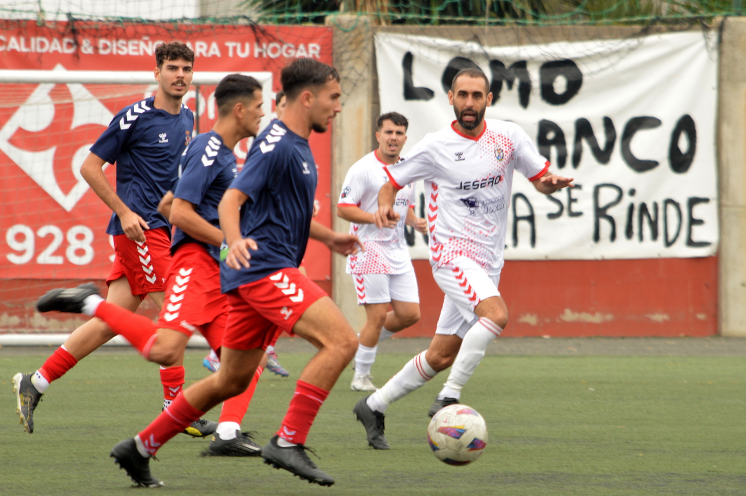 La diana del killer teldense cambió el partido. El Telde bajó enteros y el Lomo Blanco aumentó una marcha. No es un resultado que le sirviera en absoluto a un equipo que lucha por la permanencia. Disfrutó de tres ocasiones muy claras por la izquierda por medio de Ituka, Diego y Gino con el suficiente peligro para poner en alerta a la escuadra azulona, que se estaba relajando en demasía. En total, y salvo alguna llegada aislada, 25 minutos lejos del área rival.