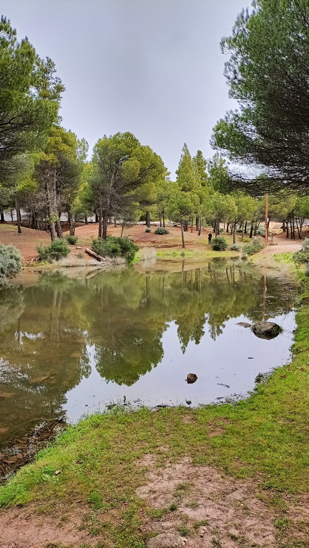 Una laguna escondida entre palmeras canarias y tarajales.