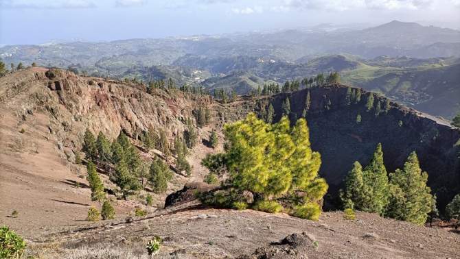 Ante mí, la impresionante hondura de la caldera de los Pinos de Gáldar no deja de ser una fuga en el paisaje, una quimérica inmersión en el abismo de lo eterno.