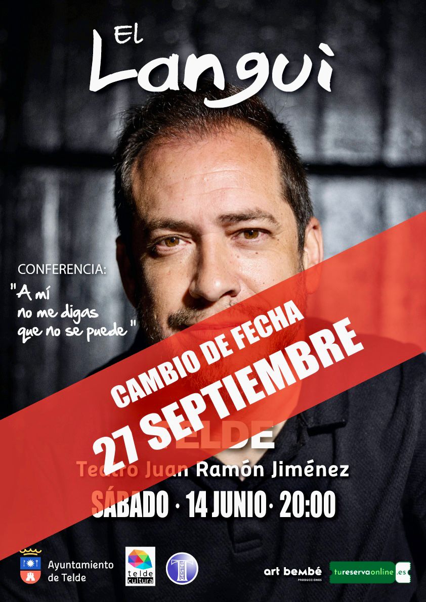 Por motivos de agenda del artista, la charla se celebrará finalmente el 27 de septiembre en el Teatro Juan Ramón Jiménez de Telde. Las entradas que ya hayan sido adquiridas serán válidas para la nueva fecha.