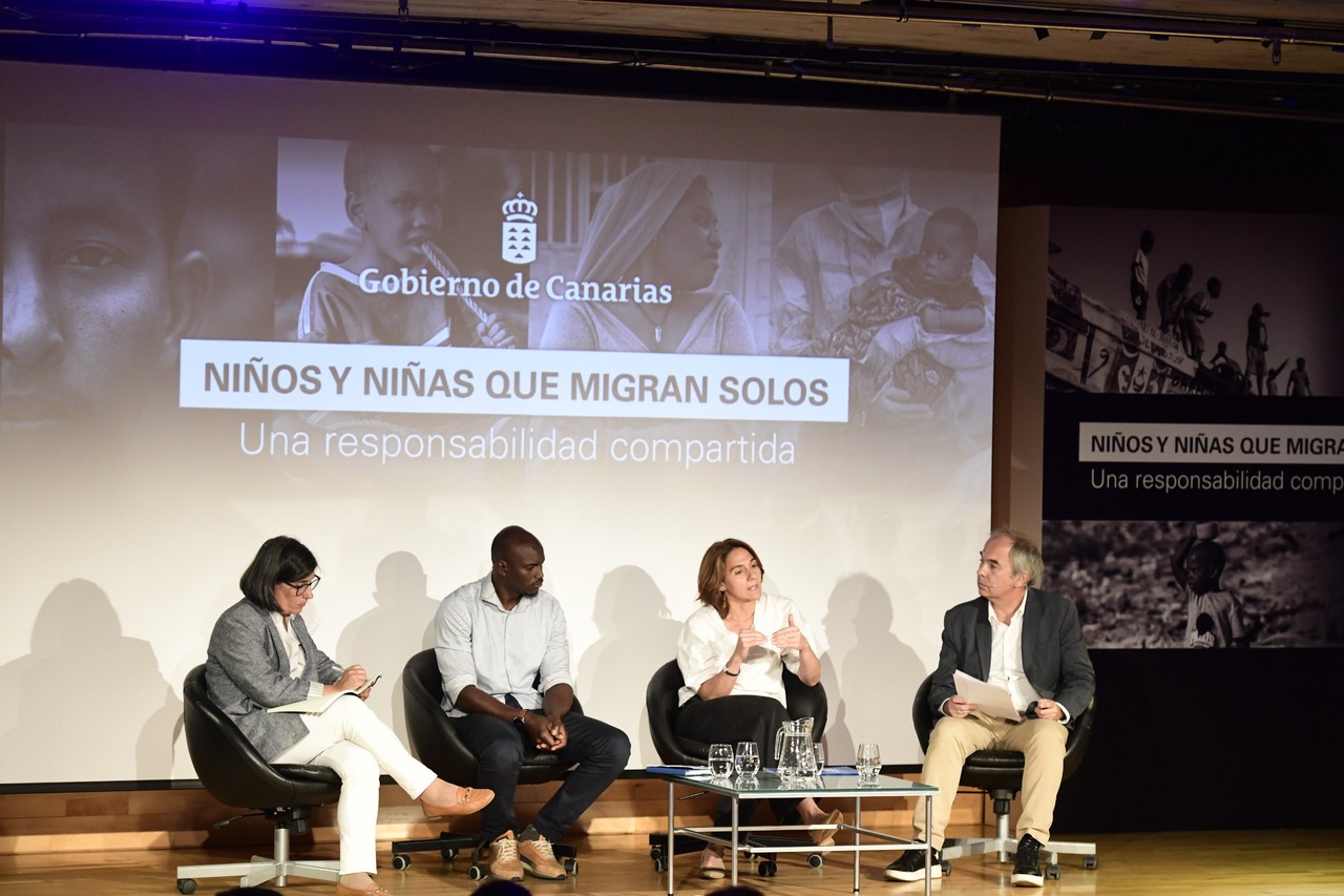 El encuentro con las ONG y organizaciones que trabajan con la infancia migrante, impulsado desde el Gobierno de Canarias, se inició con una mesa redonda en la que participaron la responsable de Infancia no acompañada de Acnur, Margarita de la Rasilla; el intérprete en ACCEM y mediador maliense Aboubacar Dramen y la abogada especialista en infancia y migraciones en Coordinadora de Barrios, Patricia Fernández.
