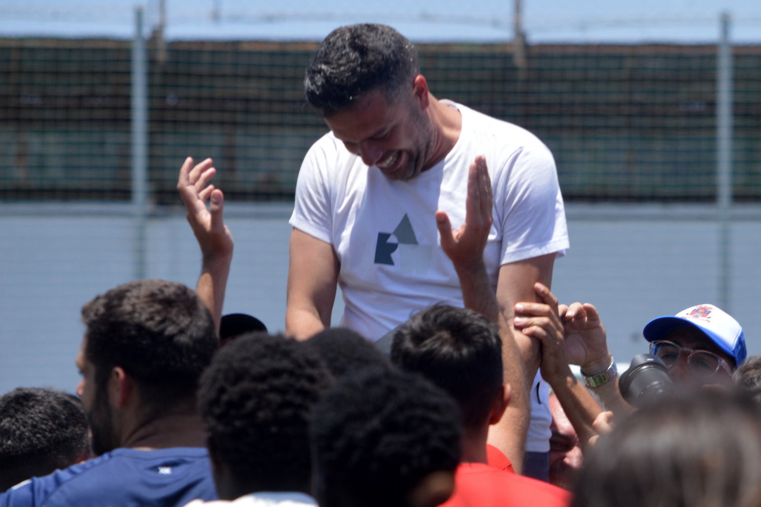 El alcalde de Telde, Juan Antonio Peña, junto al concejal de Deportes y Actividad Física, Cristhian Santana, estuvieron presentes en el encuentro y compartieron con los jugadores, cuerpo técnico y directiva este momento histórico. Ambos representantes municipales trasladaron personalmente sus felicitaciones en nombre del Ayuntamiento y del conjunto de la ciudadanía teldense.
