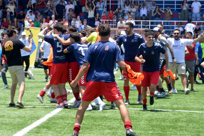 8 de junio de 2025, 14.04 horas. Esa fecha quedará marcada para siempre en la historia del equipo azulón. Ocho años después, la UD Telde regresa a la máxima categoría del fútbol canario, con tres descensos de por medio, uno de ellos a Segunda Regional por dos alineaciones indebidas en la temporada 2018-2019.