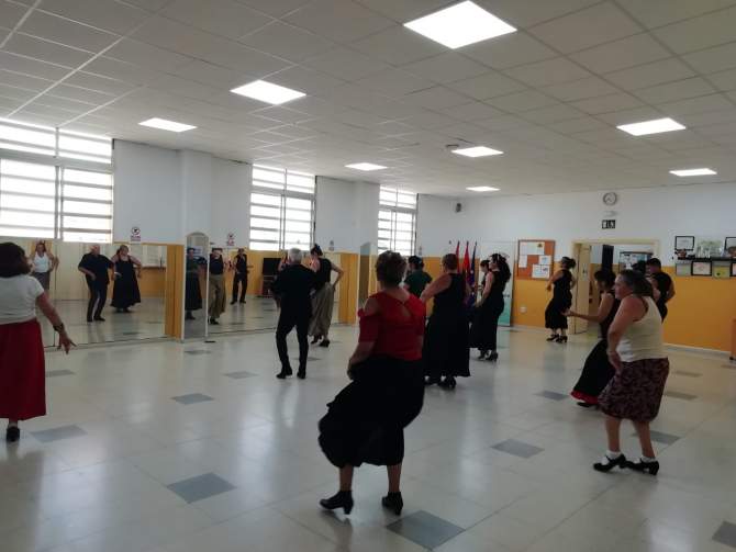 El taller fue impartido por la reconocida bailaora Amparo Navarro, quien, con su cercanía y profesionalidad, logró conectar con todos los asistentes, guiándolos por las bases del estilo de los tangos flamencos en una clase de nivel básico. La experiencia se desarrolló entre las 16.00 y las 18.00 horas en un ambiente participativo, animado y lleno de entusiasmo.