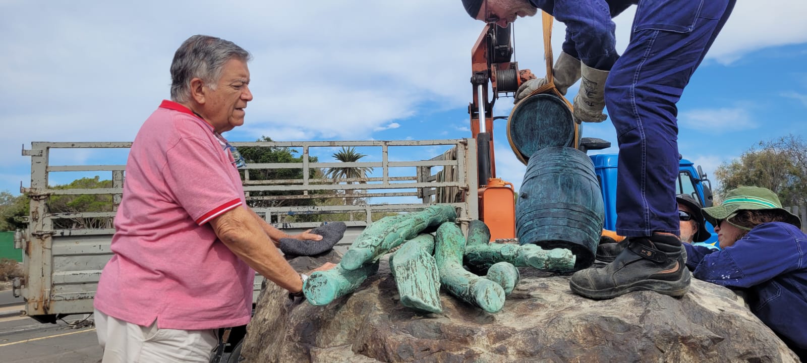 Agua y leña y Hernando Colón, obras testimonio de un relato histórico, esculturas conmemorativas que aúnan un pasado y presente de amplio litoral de costa y aguas limpias, dunas, e icónico faro vigilante, se erigen en este marco natural y emblemático de Maspalomas del sur de Gran Canaria. Enhorabuena por el excelente trabajo del equipo de restauración, transporte y colaboraciones de la corporación municipal en la restauración y mantenimiento de la creación artística monumental del escultor Máximo Riol Cimas. Gracias.