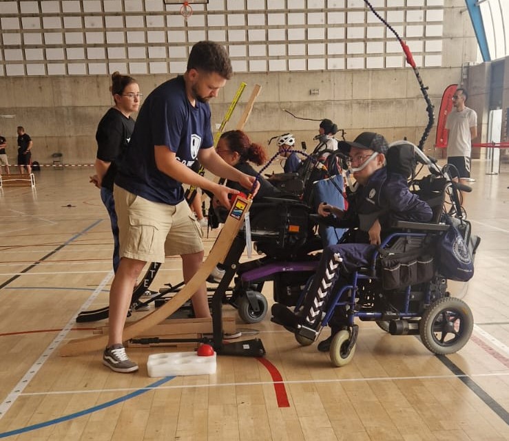 La boccia es una disciplina deportiva paralímpica similar a la petanca, diseñada específicamente para personas con parálisis cerebral u otras discapacidades físicas. Se juega en una pista cubierta y el objetivo es lanzar o hacer rodar bolas lo más cerca posible de una bola diana llamada jack. El deporte puede practicarse de forma individual, en parejas o en equipos.
