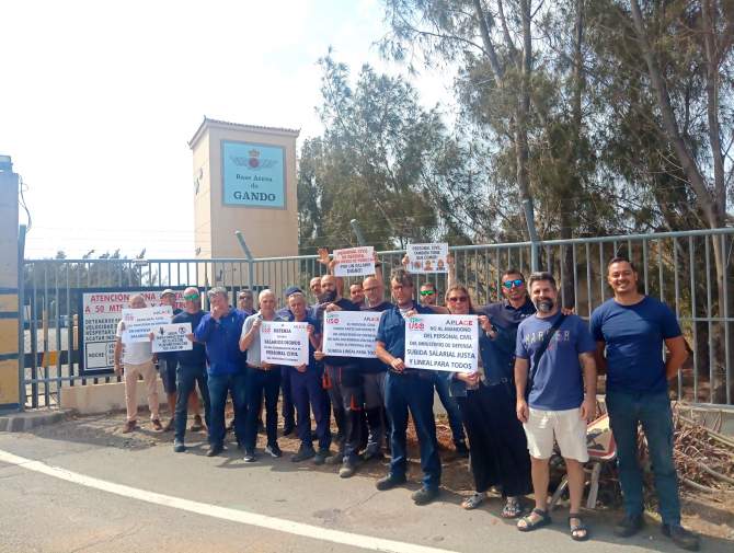 El personal civil de la Base Aérea de Gando llevó a cabo este miércoles una protesta a las puertas de las instalaciones militares para reivindicar mejoras laborales.