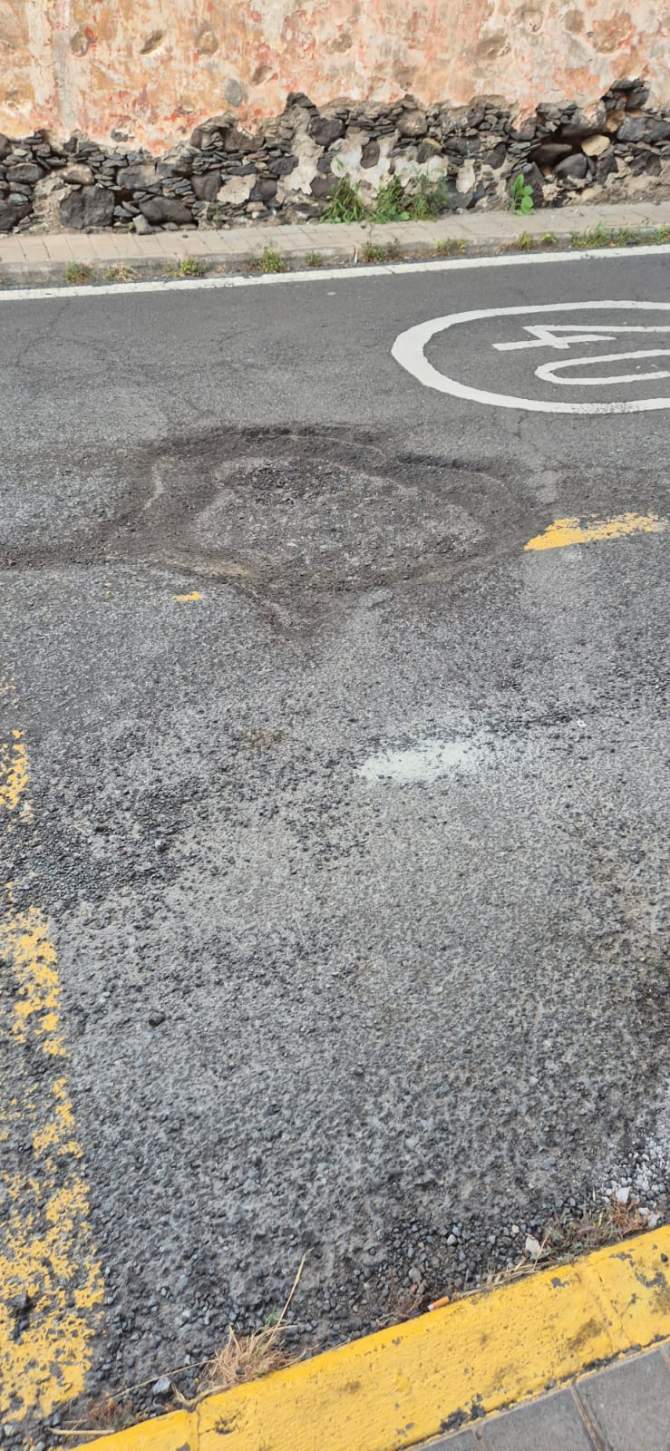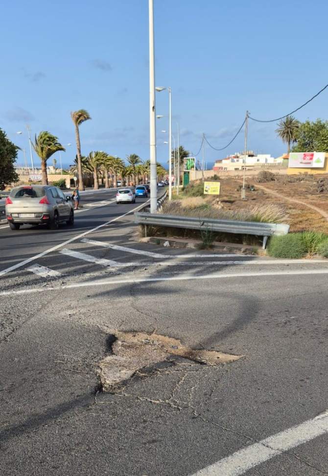 Vecinos de la calle Cango, en Callejón del Castillo, se quejan de los enormes socavones, especialmente del que se encuentra a la entrada de la vía desde el carril de incorporación a la Avenida del Cabildo.