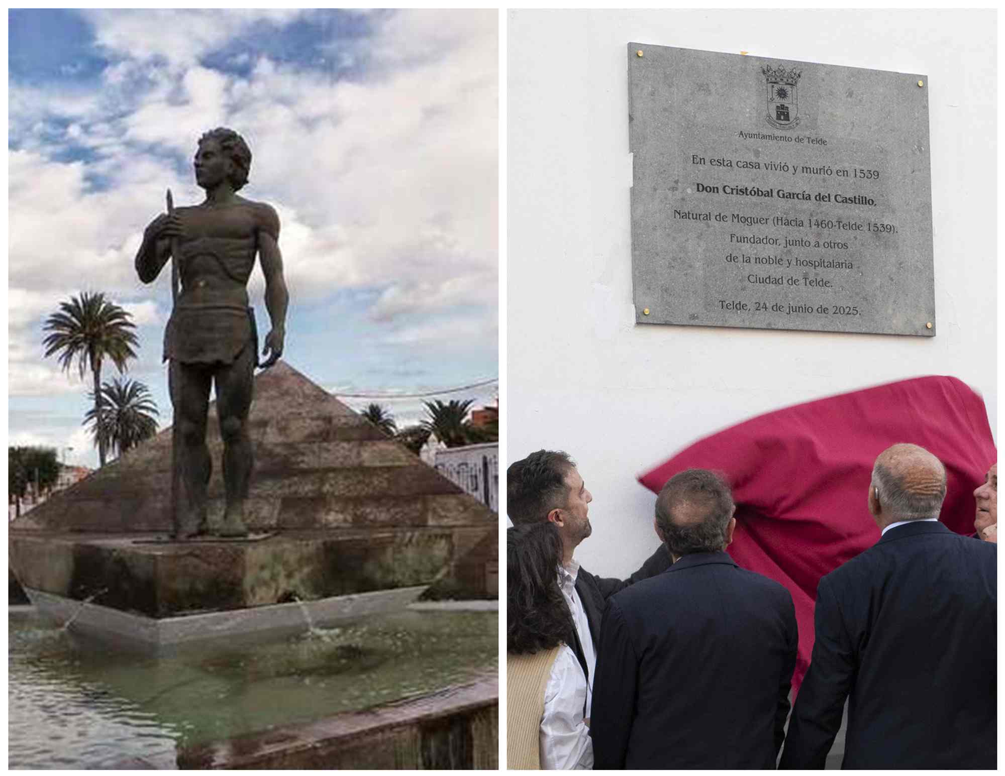 Telde nació como una urbe nueva sobre una tierra antigua, y ese cruce de historias —aborigen, europea, mestiza— forma parte esencial de nuestra identidad. Somos producto de un mestizaje histórico que no puede ignorarse. Prueba de ello es que, a escasos metros de la casa donde se descubrió el pasado lunes la placa en honor a García del Castillo, se alza una escultura majestuosa en bronce, obra de Luis Arencibia, dedicada a los faycanes, líderes espirituales del mundo indígena. Ambas expresiones, en su coexistencia simbólica, revelan una ciudad que no niega sus contradicciones, sino que las abraza para entenderse mejor.