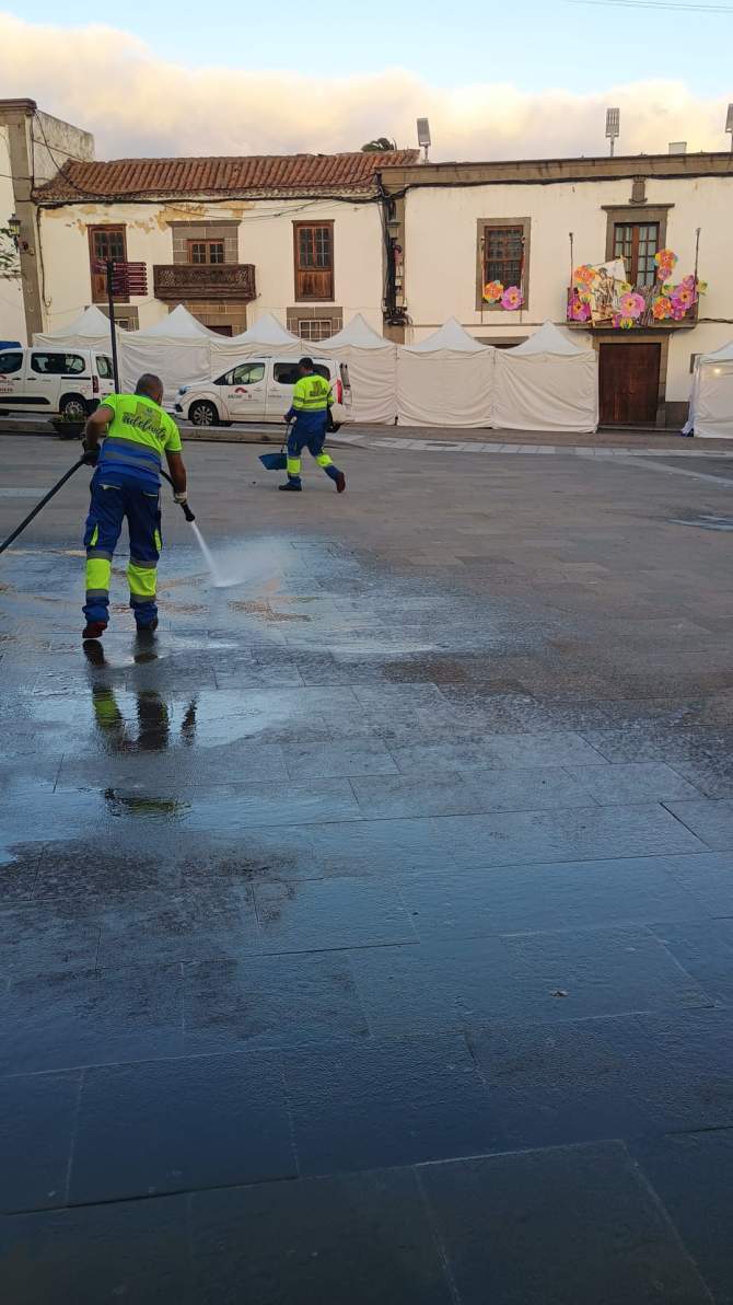 La gran Noche de San Juan en Telde concluyó con un amplio despliegue de limpieza para garantizar que tanto el casco histórico como la playa de Melenara estuvieran en perfecto estado tras la celebración. El dispositivo especial, formado por cuatro operarios en cada zona junto a un camión y un hidro para la limpieza a presión, comenzó a actuar a las cuatro de la madrugada y se prolongó hasta avanzada la mañana.