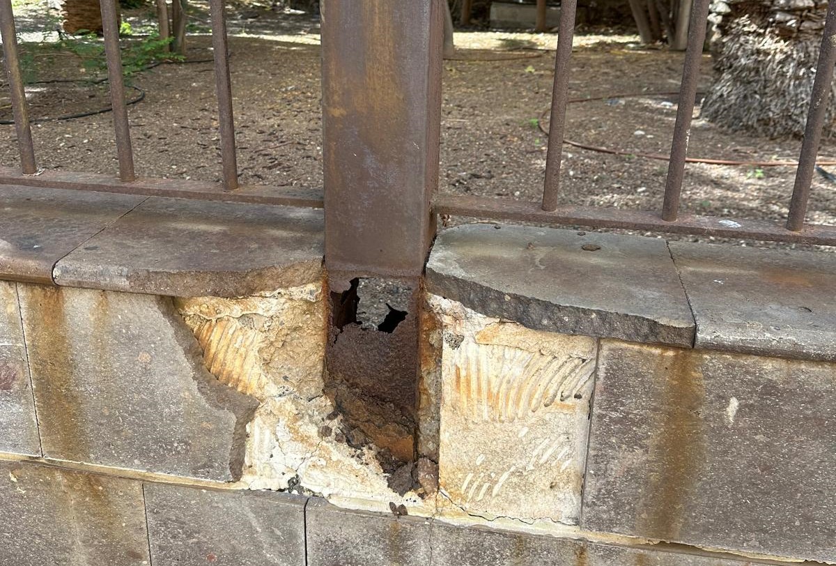 Según explican, la oxidación de los postes que sujetan la valla está provocando grietas y daños en el muro de piedra, generando un serio riesgo de derrumbe en varias zonas. En la imagen remitida, se observa con claridad el deterioro y la corrosión que afecta a la estructura, evidenciando un problema que, según denuncian, lleva tiempo empeorando ante la falta de una intervención adecuada.