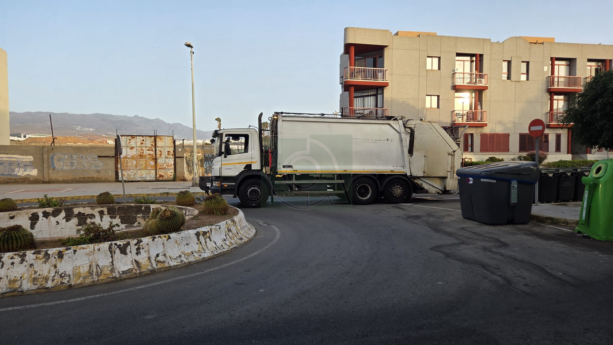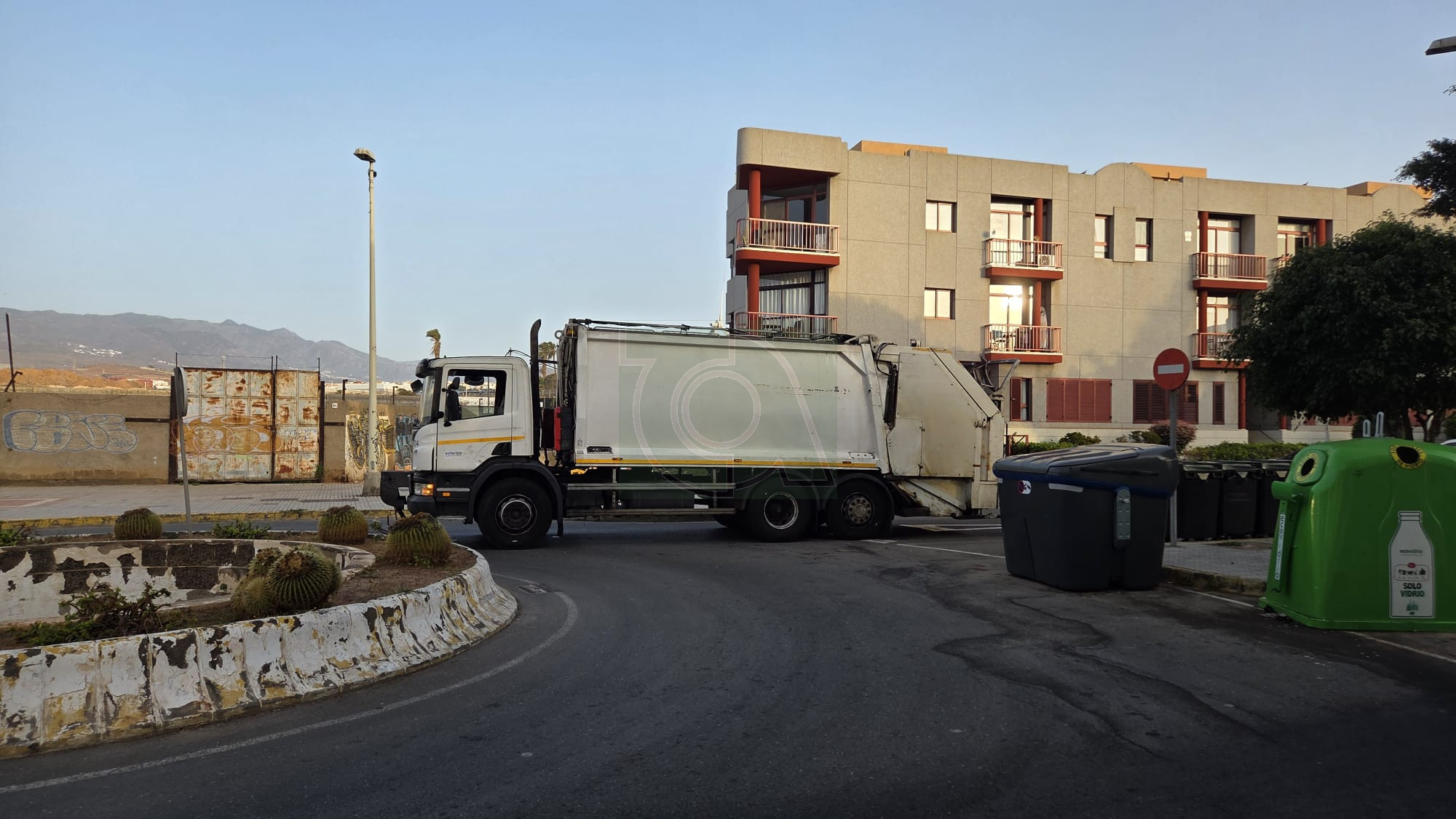 La avería ha provocado que el camión, de gran tonelaje y cargado de basura, quede obstaculizando el giro y el paso de vehículos en este punto clave de la circulación, afectando especialmente a la conexión con la costa.
