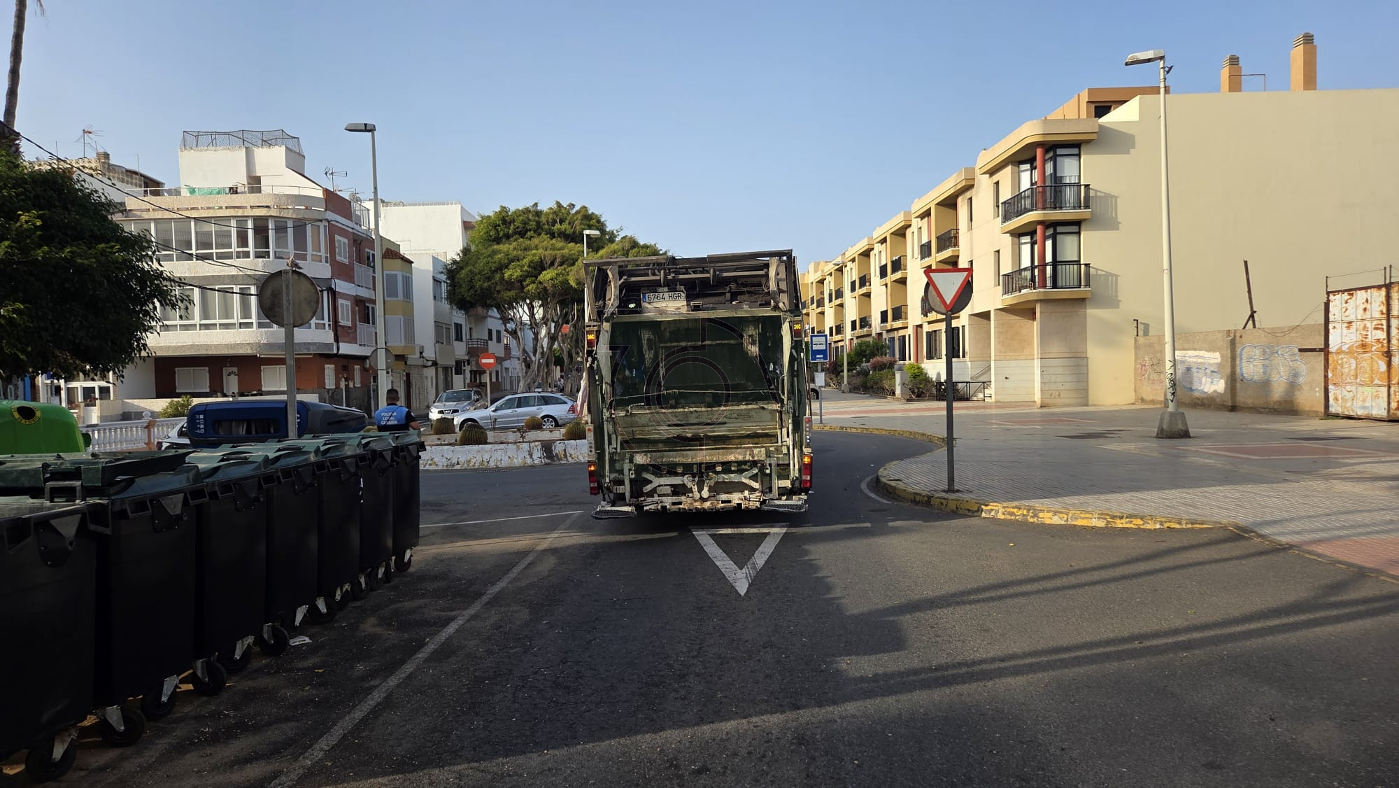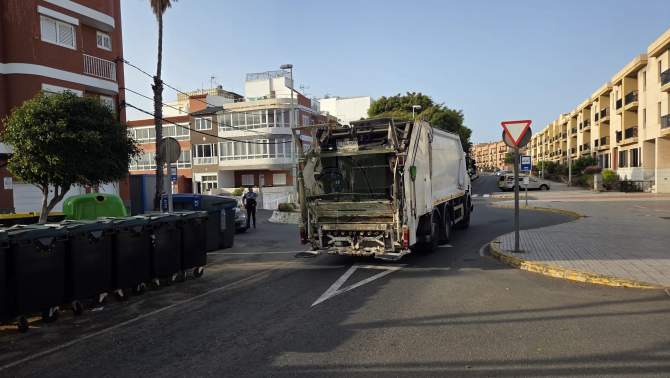 Un camión del servicio de recogida de residuos sólidos urbanos se encuentra averiado desde hace más de una hora en la Avenida Américo Vespucio, en Salinetas, a la altura de la rotonda de La Barranquera, en la costa de Telde.