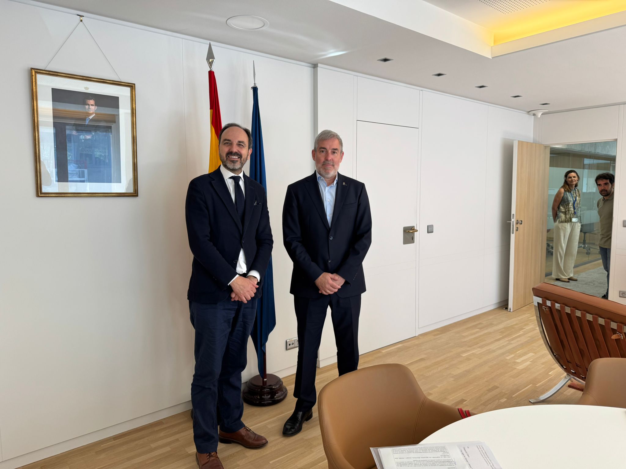 En tercer lugar, el presidente analizó con el embajador de España ante la UE la revisión del Sistema de Comercio de Derechos de Emisión de la Unión Europea (ETS) que tendrá lugar el próximo año. Canarias cuentan con informes que demuestran el impacto económico que generarían estas tasas a las emisiones en su transporte marítimo y aéreo, por lo que defienden que se mantenga más allá de 2030 la exoneración en las conexiones interinsulares y con la península.