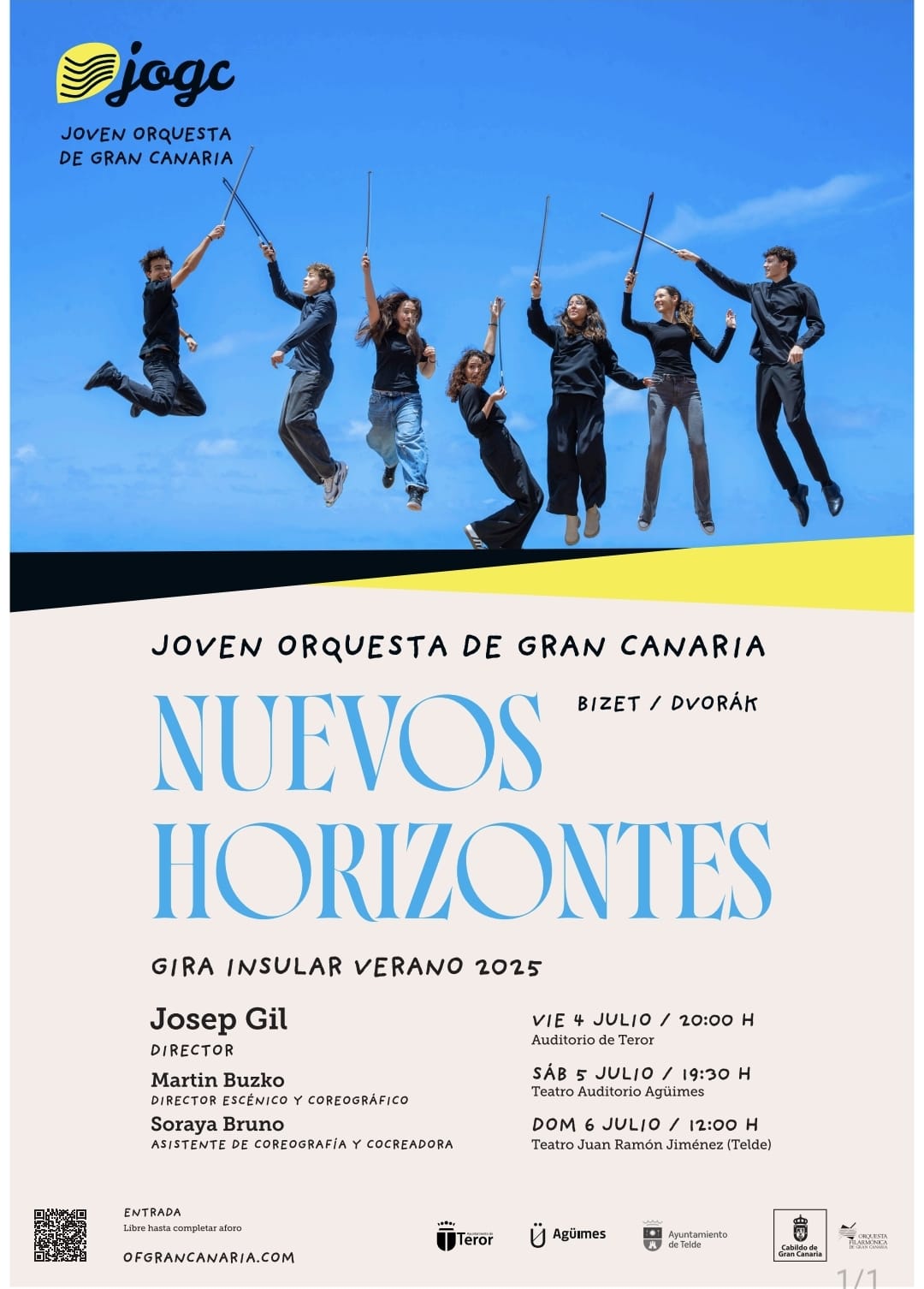 La Joven Orquesta de Gran Canaria (JOGC) clausurará este domingo a las 12.00 su gira insular de verano con un concierto en el Teatro Municipal Juan Ramón Jiménez de Telde como cierre del ciclo organizado por la Fundación Orquesta Filarmónica de Gran Canaria (OFGC). Entrada gratuita hasta completar aforo.